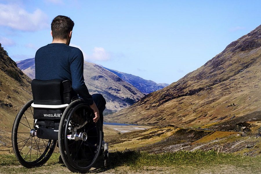 The patent pending wheelAir product is a specially designed supportive cushion that uses battery-operated inbuilt fan technology. Layers of breathable viscoelastic foam make up the cushion itself which is machine-washable and fits all self-propelled wheelchairs.