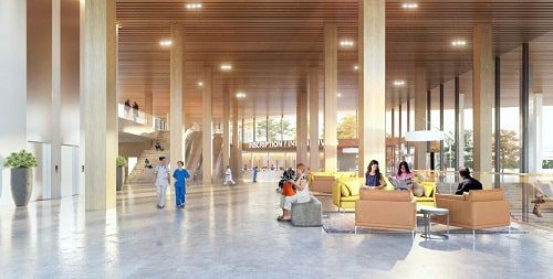 Then, the new 120-meter-long in-patient tower that we’re going to build won’t be like a bar stuck on top but like several smaller buildings entangled and entwined that will give the impression of a city skyline. From the exterior the hospital will look like something really residential, really human. We’re also going to redo the lobby and make it more welcoming with shops, convenience stores and a real restaurant.