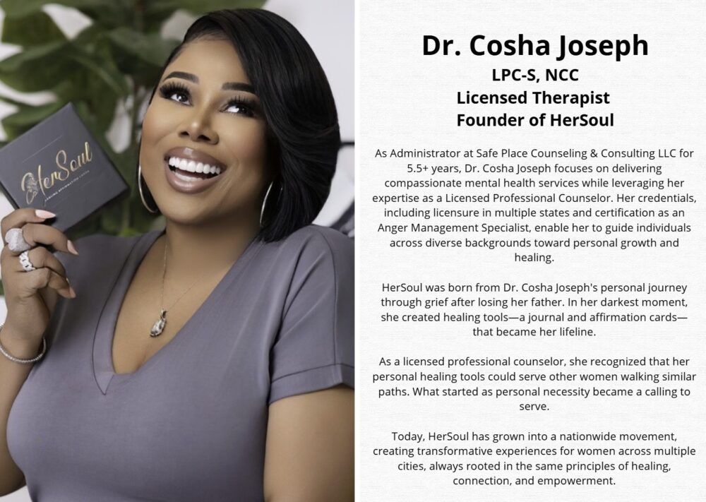HerSoul: The Experience Chicago Edition, happening October 24, 25, 2025, will bring this vision to life in an immersive, two-day breakthrough for women ready to heal, connect, and reclaim their wholeness. You can connect with me on Instagram @DrCoshaJoseph, visit the official HerSoul: The Experience website for updates, resources, and community engagement.